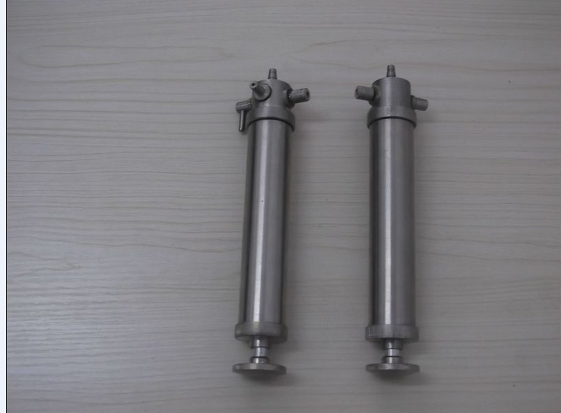 主要由三通閥門、進(jìn)氣口、出氣口、膠塞閥、拉桿、活塞、氣筒及密封圈等部件組成。